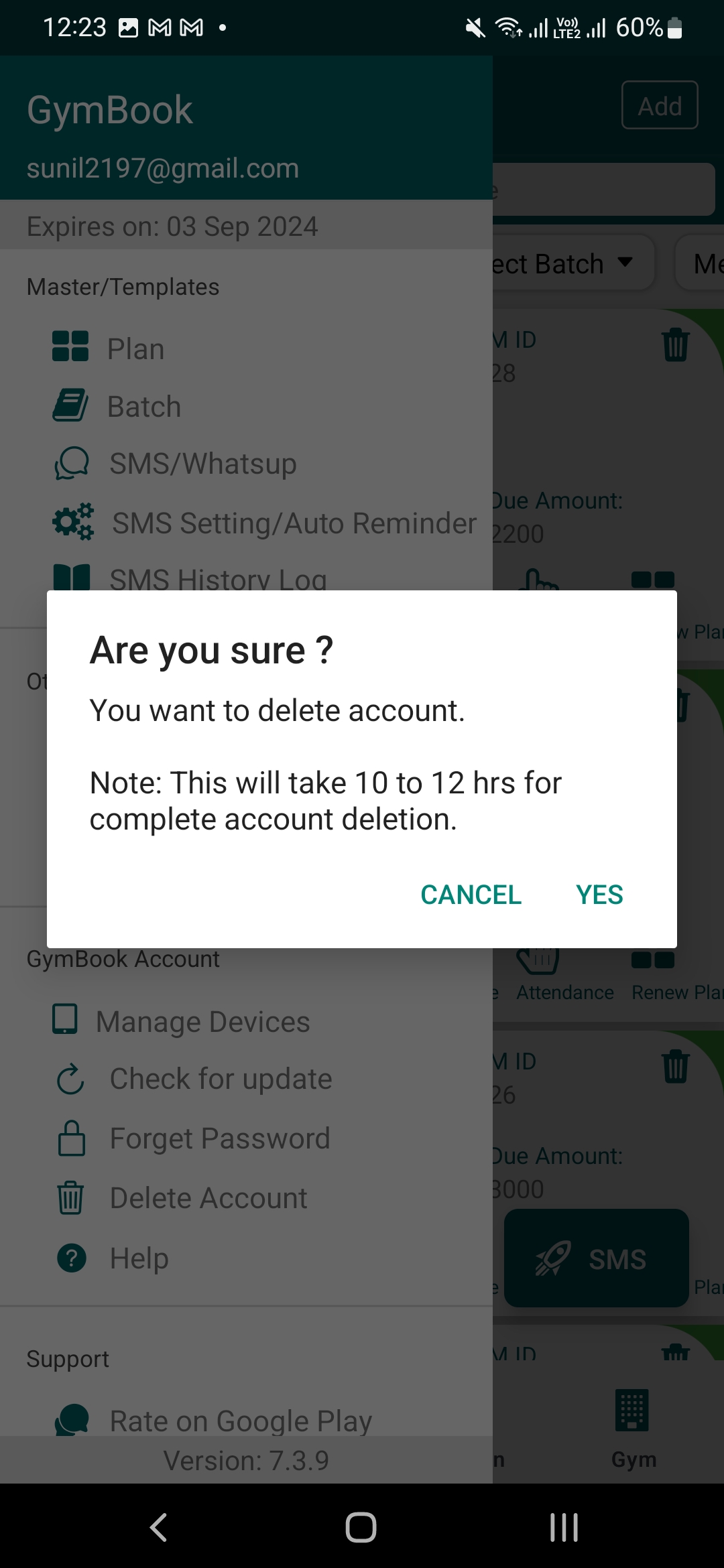 If you wish to delete your account and associated data in GymBook, please follow the steps below: